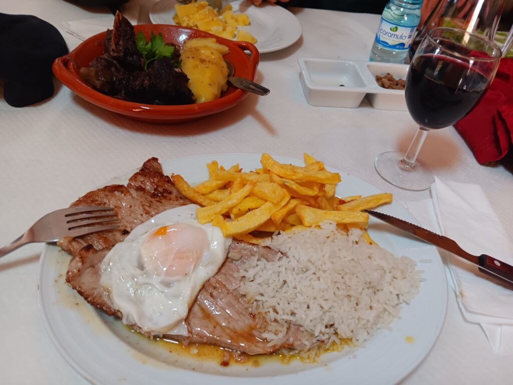 🐖🍳🥔 “Bitoque de porco: ovo a cavalo, batata estaladiça e arroz a segurar o molho 🍳🥩🔥