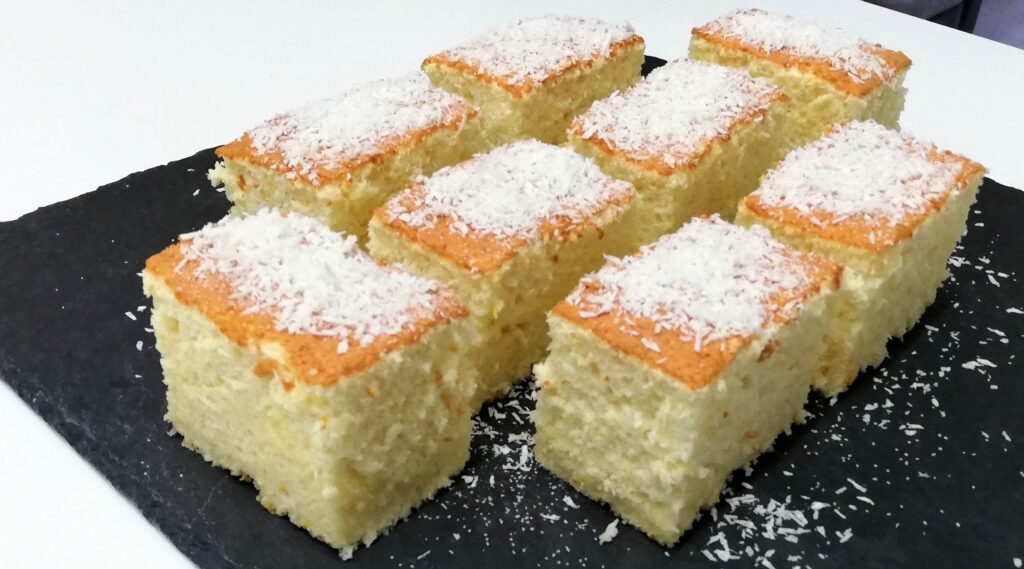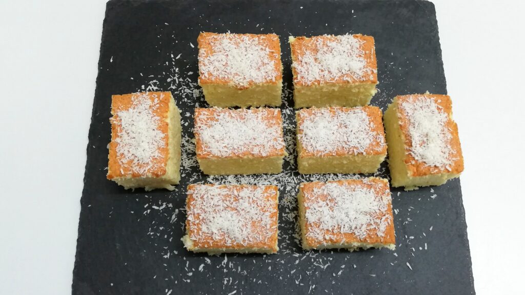 Depois de arrefecer, cortar a gosto, polvilhando no final com coco.