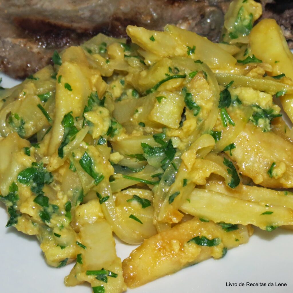 Deixe as batatas no refogado durante algum tempo sempre com o lume baixo;