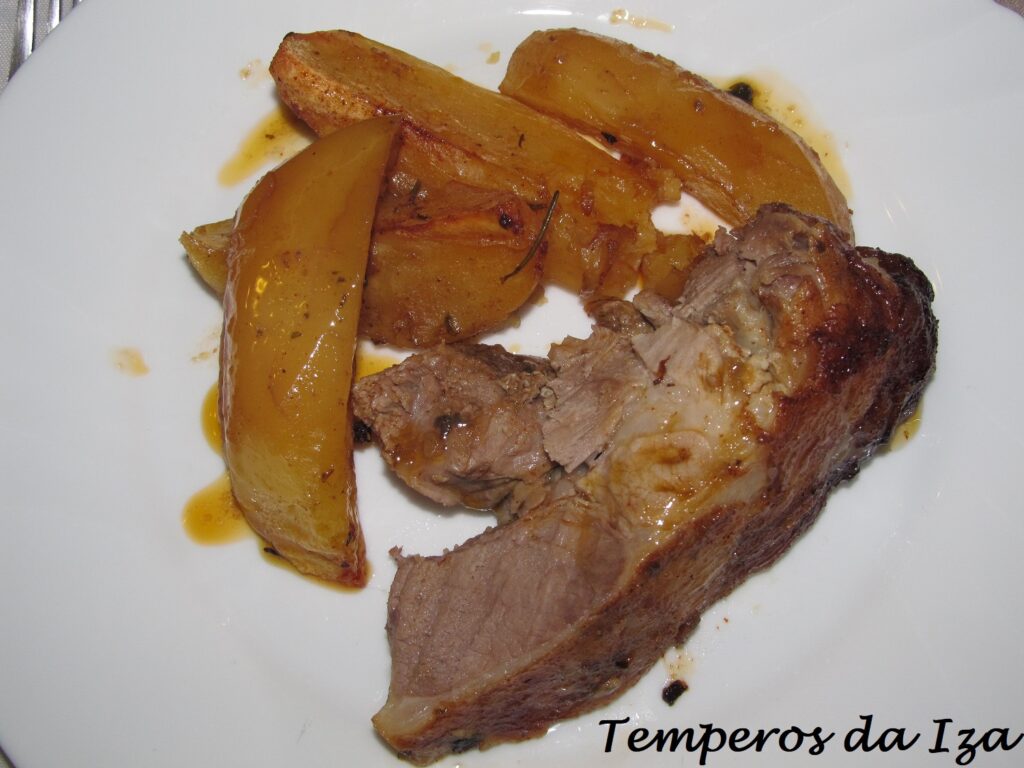 Nota: Se as batatas estiverem já assadas e a carne ainda precisar de mais algum tempo, tape o tubeiro com papel de alumínio e leve novamente a assar, até ficar pronto.